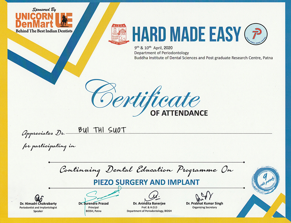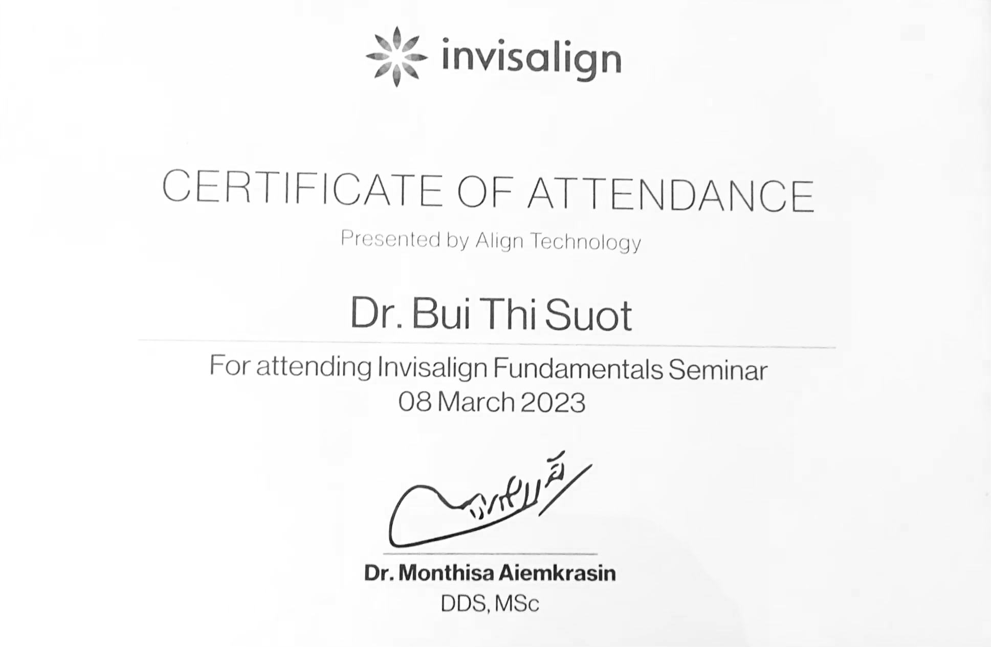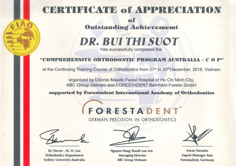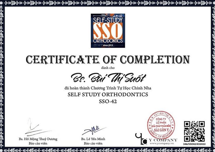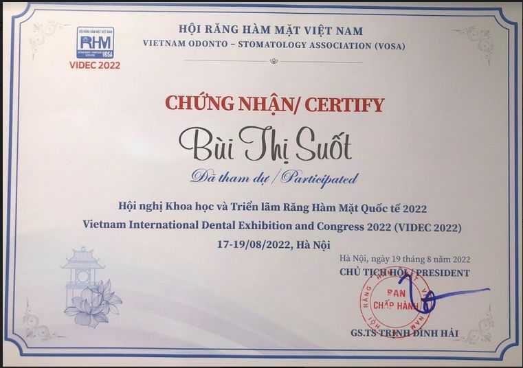 Bên cạnh đó, bác sĩ Bùi Suốt cũng tham gia các khóa học nâng cao nghiệp vụ, những buổi hội thảo… để cập nhật kiến thức mới nhất của ngành chỉnh nha như: Chứng chỉ chỉnh nha SSO, chứng chỉ khóa học nắn chỉnh răng Damon Masterclass, chứng chỉ cơ sinh học điều trị chỉnh nha mắc cài tự buộc 3M, hội nghị Khoa học và triển lãm răng hàm mặt quốc tế… Đây đều là những kiến thức quý giá mà bác sĩ chỉnh nha nào cũng nên có để chẩn đoán chính xác tình trạng cho bệnh nhân và biết cách lập kế hoạch cũng như thực hiện chỉnh nha tốt nhất cho bệnh nhân của họ.