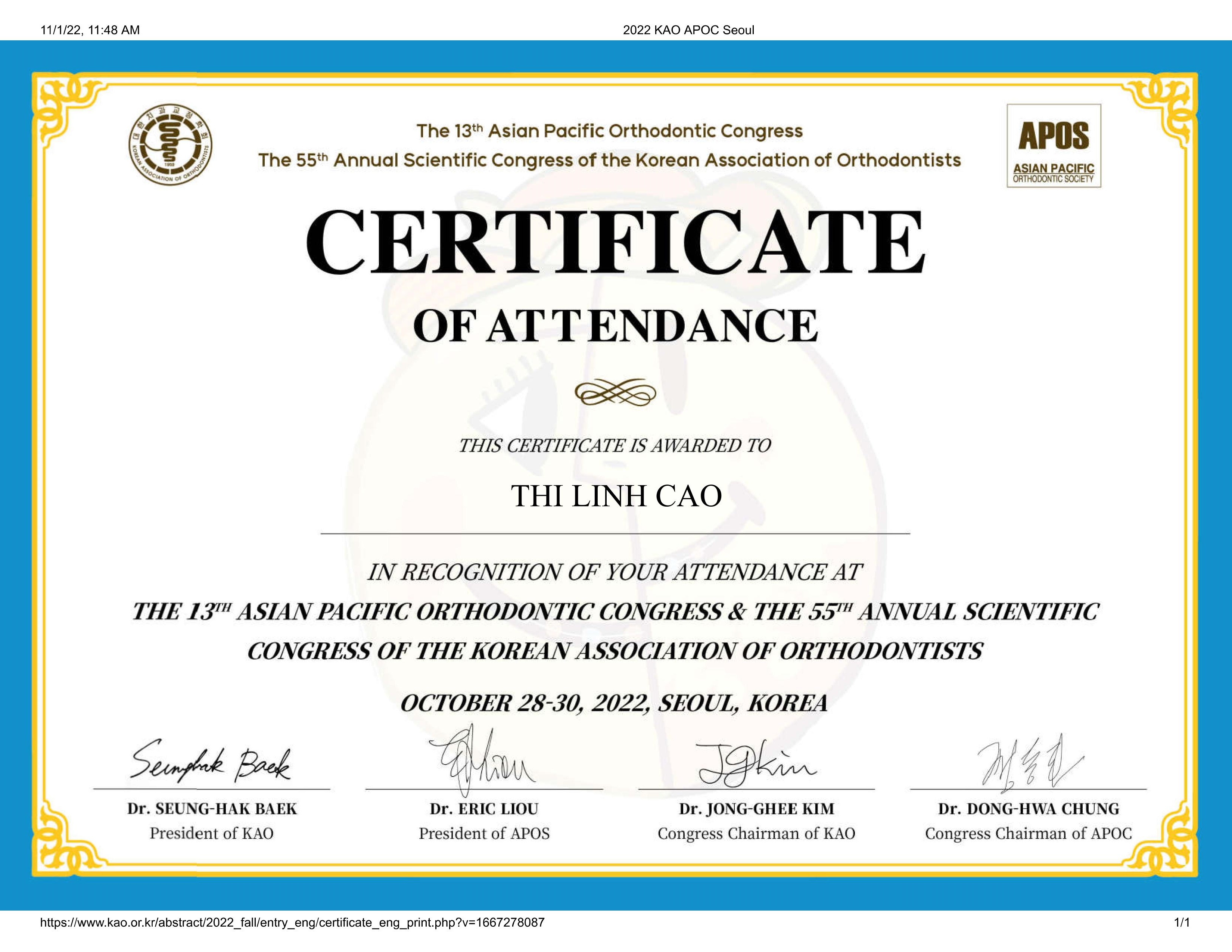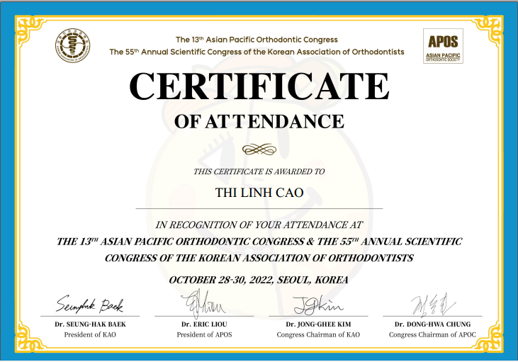Chính vì thế, bác sĩ Cao Linh đã cố gắng học tập để theo đuổi trường đại học Y, sau khi tốt nghiệp bên cạnh việc đi làm, bác sĩ Cao Linh còn tham gia nhiều khóa đào tạo chuyên sâu khác để nâng cao nghiệp vụ và cập nhật kiến thức mới như các khóa ứng dựng minivis kiểm soát neo chặn chỉnh nha – SSO hay khoá học chỉnh nha chuyên sâu Bioprogressive- Meaw-Geaw để áp dụng vào các phương pháp chỉnh nha mắc cài.