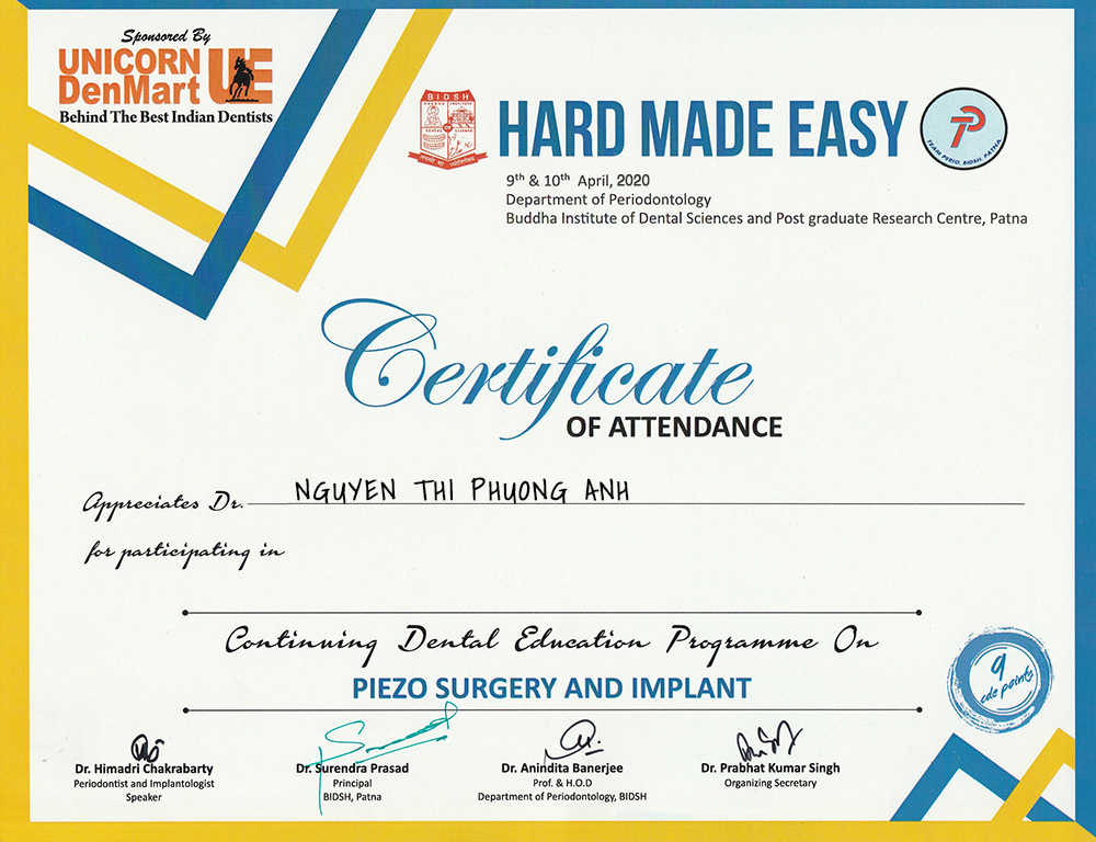 Để thực hiện niềng răng chỉnh nha cho khách hàng thì kiến thức chuyên môn thôi là chưa đủ, bác sĩ Phương Anh đã tham gia các khóa học chuyên sâu, đào tạo về nghiệp vụ chỉnh nha và được Bộ Y tế cấp chứng chỉ hành nghề.