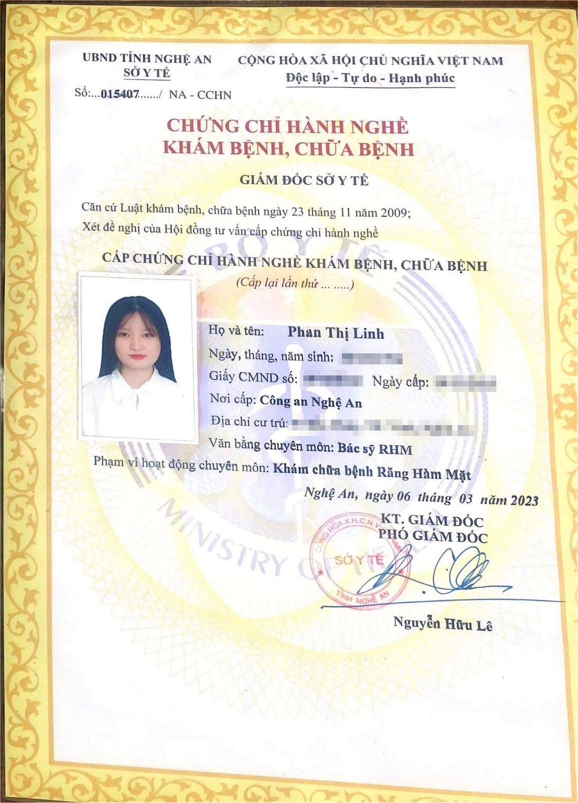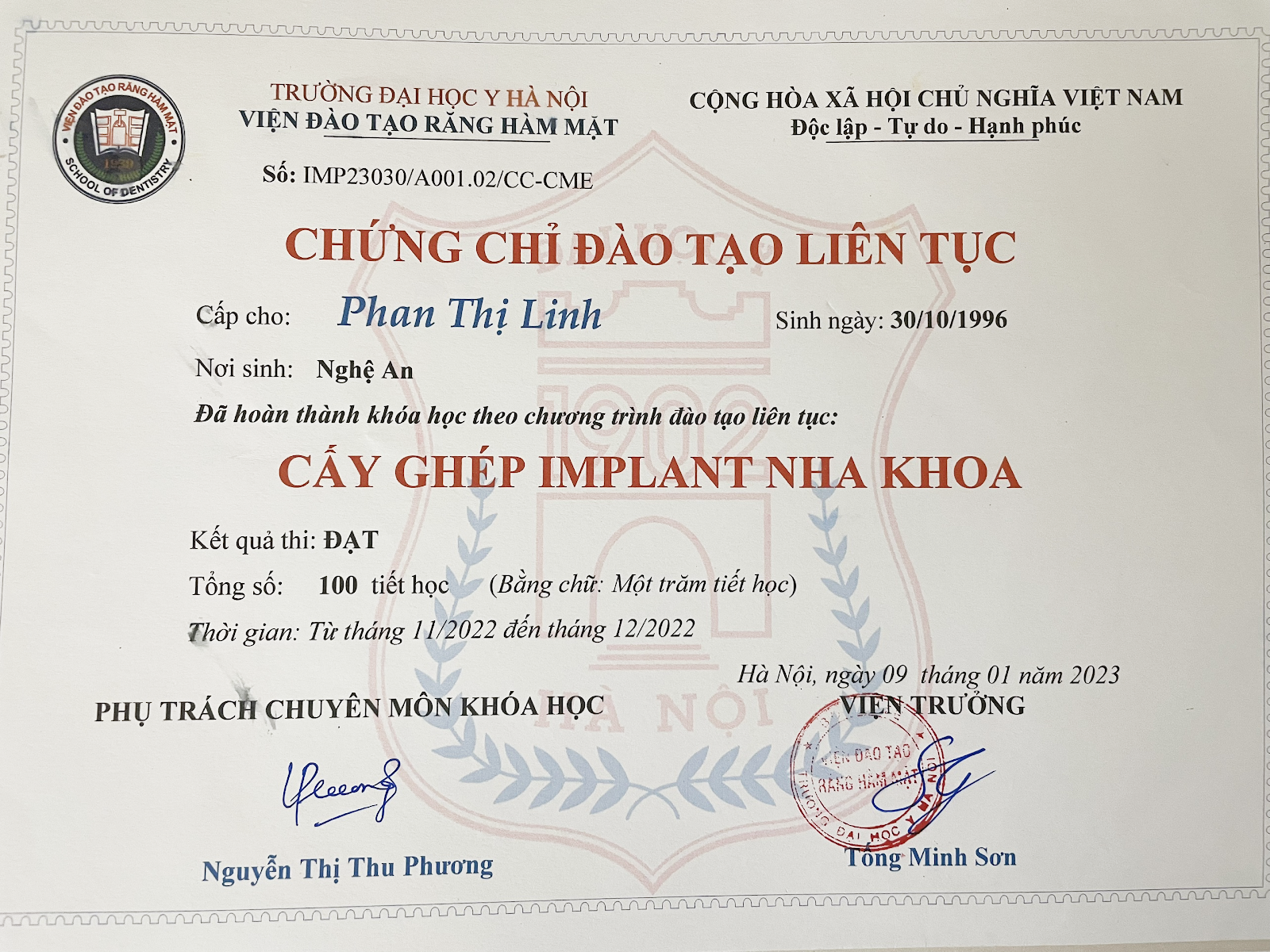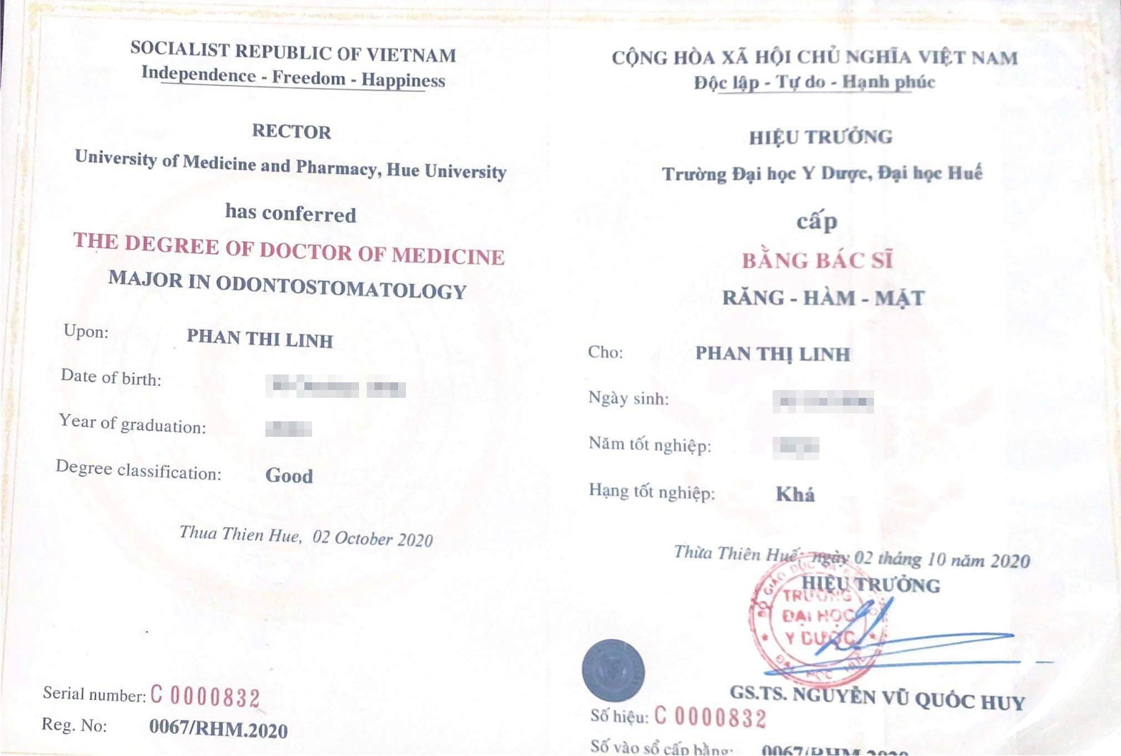 Tốt nghiệp bác sĩ chính quy chuyên ngành Răng Hàm Mặt đại học Y Hà Nội