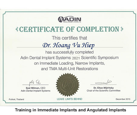 • Đạt thành tích xuất sắc về chuyên đề cập nhật công nghệ trồng răng implant 2021 do các Giáo sư Dolly Patel, Dr Mihir Shah, Bela Dave, Ina Patel đào tạo