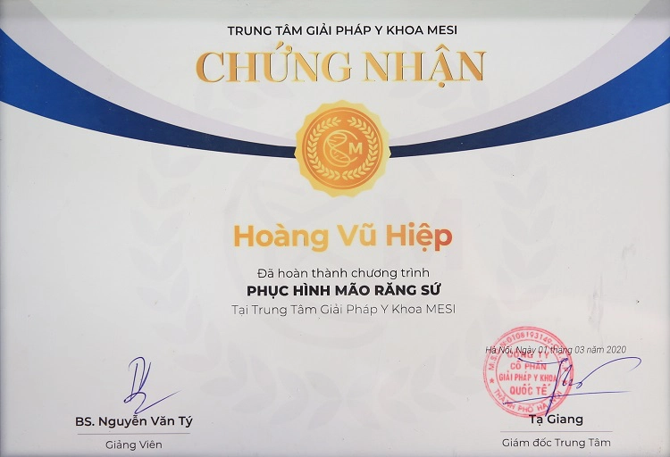 Sau khi tốt nghiệp, bác sĩ Hiệp đã tu nghiệp tại Hàn Quốc và đạt nhiều chứng chỉ cấy ghép Implant trong và ngoài nước.