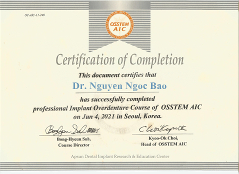 • Tu nghiệp chương trình đào tạo cấy ghép implant của Dentium ACADEMY, Hàn Quốc