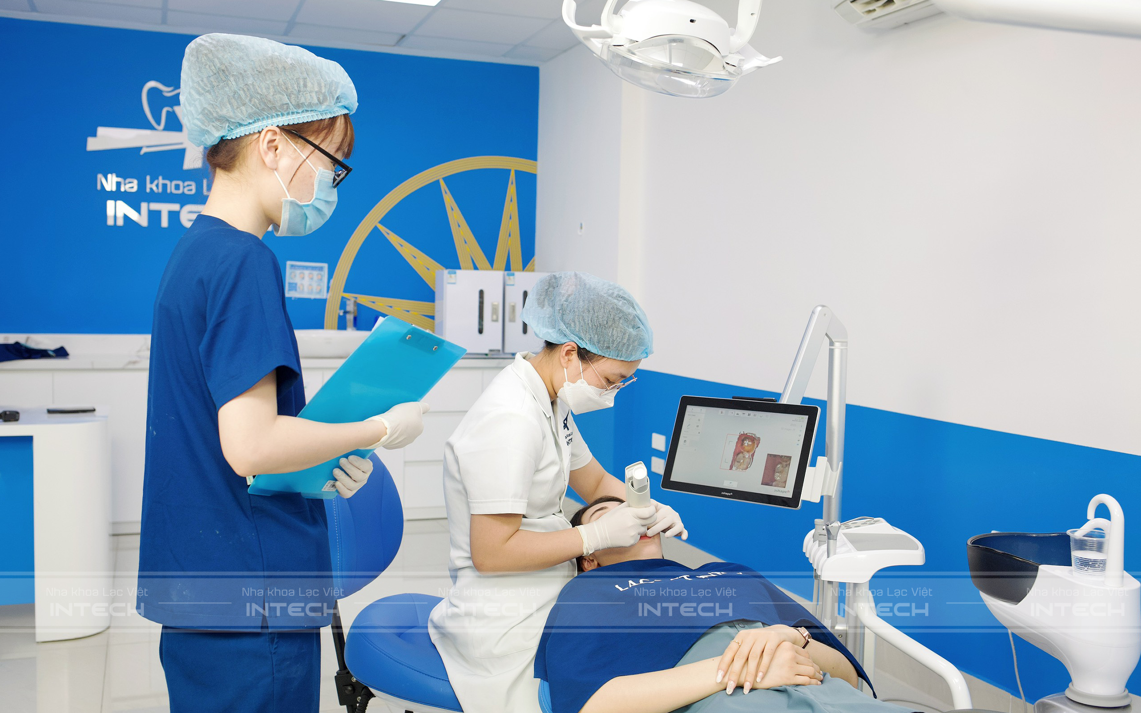 Tại Nha khoa Lạc Việt Intech Nghệ An, sử dụng máy chụp X-quang và quét dấu răng là hai thiết bị quan trọng trong quá trình niềng răng.