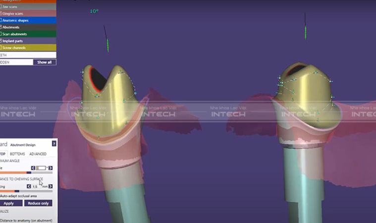 Với công nghệ DCT, Abutment sẽ được sản xuất cá nhân hóa theo từng bệnh nhân. Sau khi thu thập dữ liệu lợi và răng bằng công nghệ Scanning Oral, dữ liệu này sẽ được chuyển vào Exocad. Exocad là một phần mềm CAD nha khoa có các chức năng CAD và CAM và có thể xử lý khối lượng dữ liệu lớn. Việc chuyển dữ liệu vào phần mềm vào Exocad sẽ giúp tái lập giả định theo không gian ba chiều là chiều trong ngoài, gần xa và chiều trên dưới. từ đó, tạo mô lợi hoàn hảo.