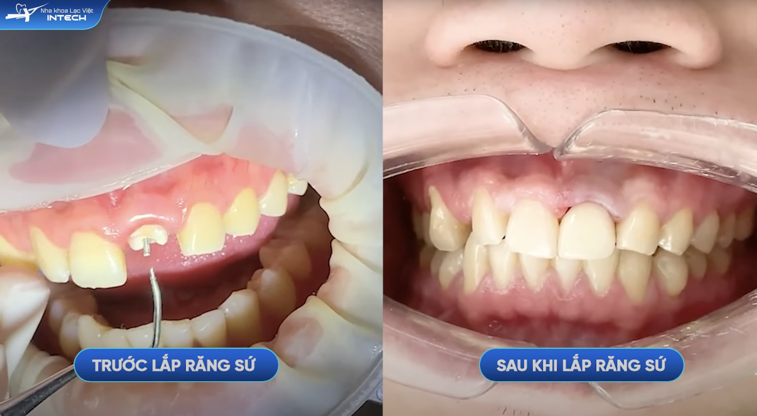 Giai đoạn lắp răng sứ hoàn thiện phục hình cho răng cắm chốt