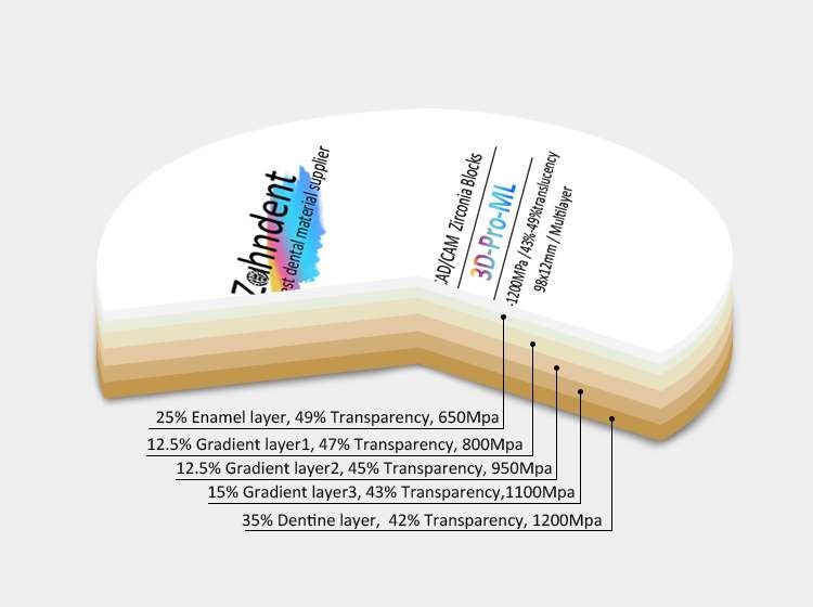 Răng sứ 3D Pro ML có độ cứng biến thiên 5 tầng, thuộc tính này hoàn toàn trùng khớp với răng thật.
