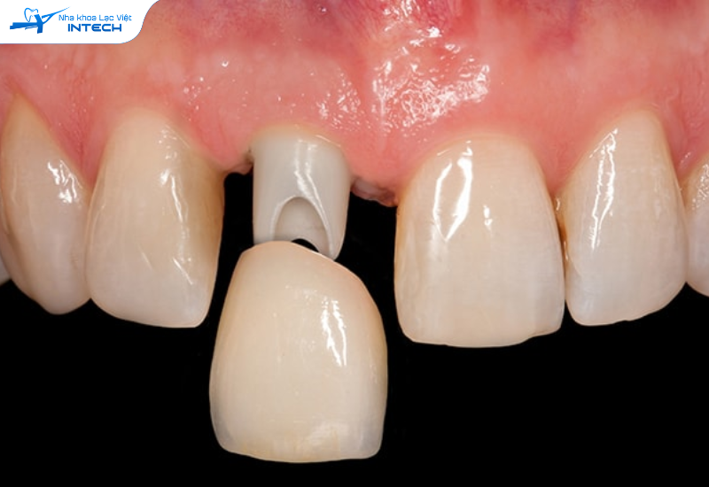 Lắp răng sứ lên trên trụ phụ hình, đảm bảo thẩm mỹ giống như răng thật.