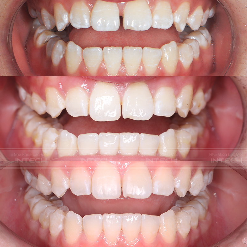 Quá trình kéo khít khe thưa bằng khay niềng trong suốt invisalign của Phương Thảo tại Lạc Việt Intech