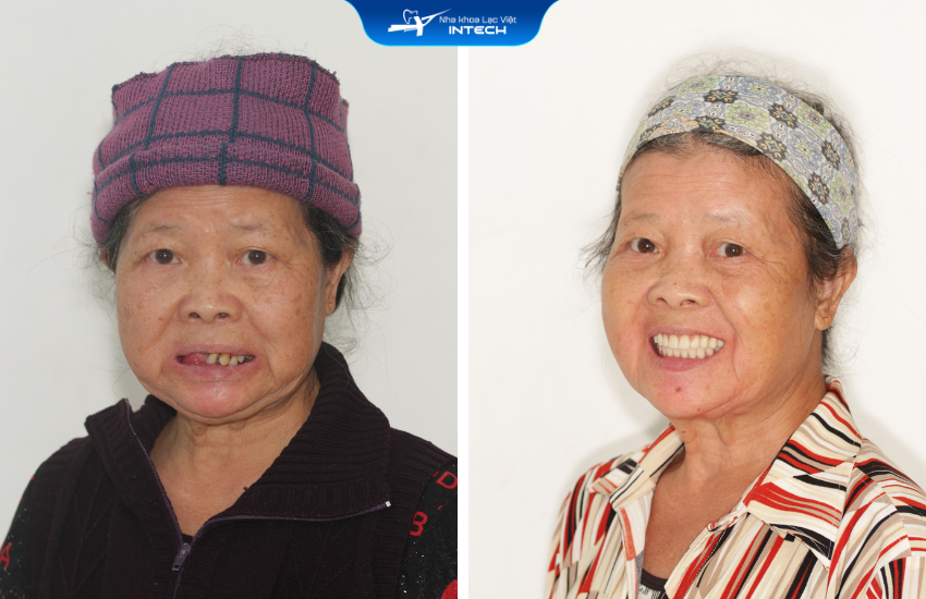 Hình ảnh trước và sau khi trồng răng Implant của cô Bộ tại Lạc Việt Intech