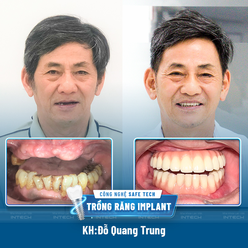Như vậy hành trình trồng răng implant toàn hai hàm của chú Đỗ Quang Trung đã chính thức khép lại. Sự tin tưởng, hài lòng với kết quả điều trị của chú Trung cũng chính là động lực để đội ngũ bác sĩ, nhân viên tại Nha khoa Lạc Việt Intech tiếp tục cố gắng vì sứ mệnh phụng sự khách hàng.