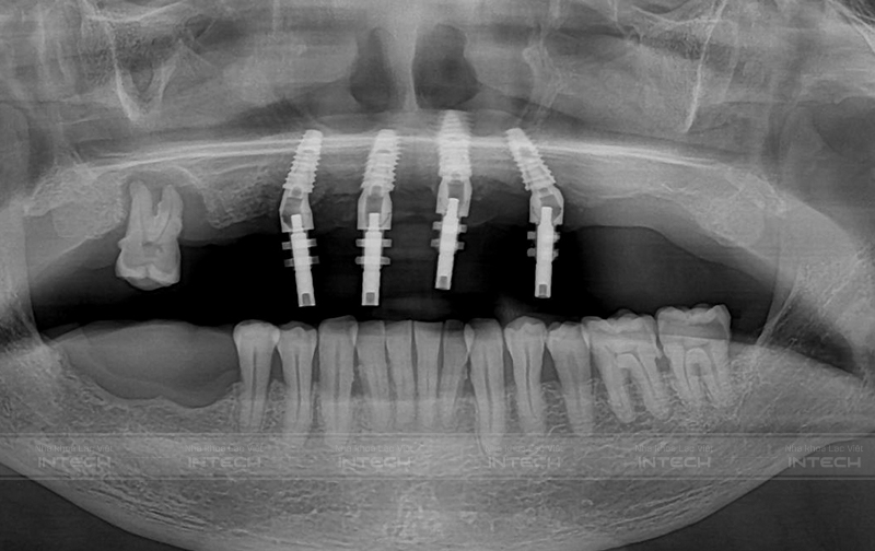 Dựa trên các thông tin về tình trạng của chú Trung, bác sĩ tại Nha khoa Lạc Việt Intech đã đưa ra kế hoạch điều trị của chú là implant răng toàn hàm trên bằng phương pháp All-on-4, tức là cấy ghép 4 trụ implant ở các vị trí đã được xác định.