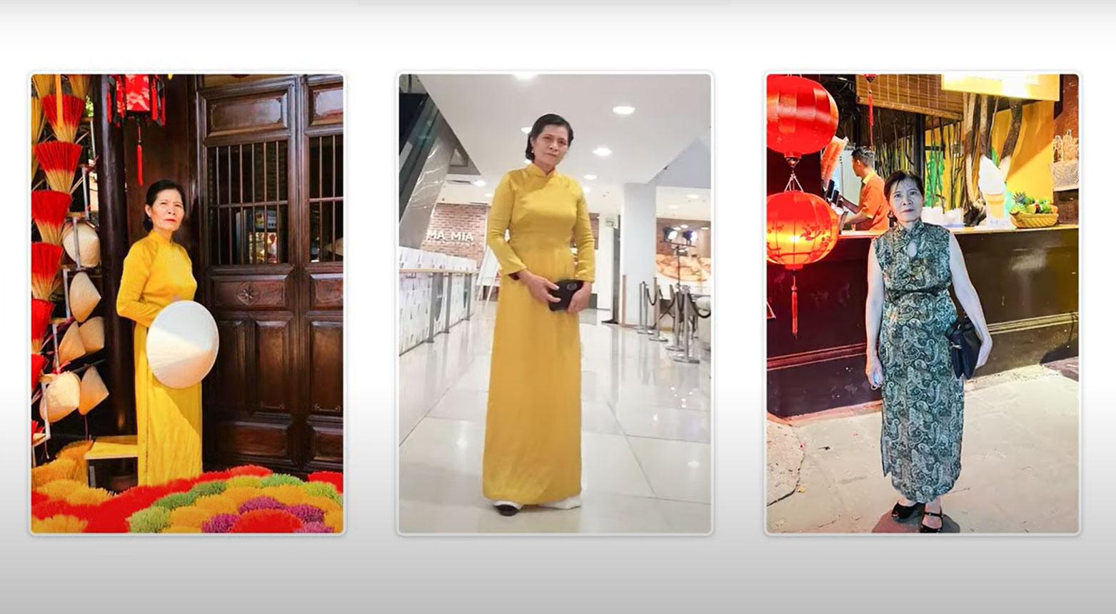 "Lúc trước cô rất tự ti, không dám đi gặp gỡ bạn bè. Thế nhưng sau khi trồng răng xong, cô cảm thấy tự tin hơn rất nhiều, thoải mái đi du lịch, chụp ảnh với gia đình và giao lưu với bạn bè”. - Cô Tô Thị Hải hạnh phúc chia sẻ.