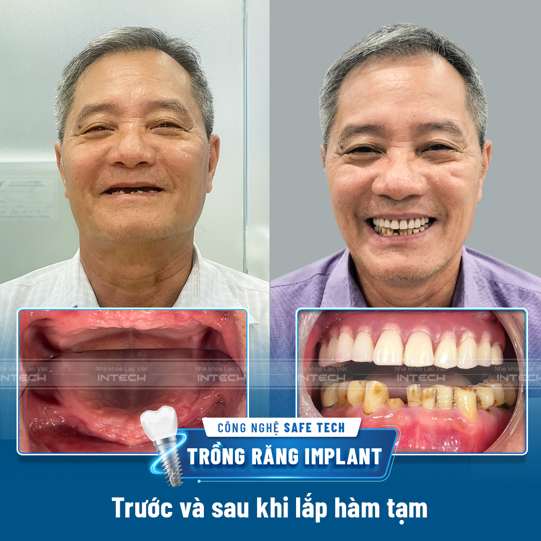 Sau khi tham khảo trồng implant là gì trên internet, chú Chinh bắt đầu hành trình từ Phúc Thọ đến trung tâm thành phố Hà Nội để thăm khám, tư vấn tại nhiều nha khoa. Cuối cùng, chú quyết định trao gửi niềm tin với đội ngũ bác sĩ tại Lạc Việt Intech. “Tôi đã đi qua 3-4 nha khoa để kiểm tra, nghe tư vấn nhưng chưa nơi nào khiến tôi yên tâm. Đến khi tôi đến Lạc Việt Intech cơ sở 27 Nguyễn Văn Huyên, nhìn thấy trực tiếp trang thiết bị, công nghệ, nghe bác sĩ tư vấn, tôi cảm thấy tin tưởng nên đã quyết định làm răng tại đây”, chú Chinh chia sẻ.
