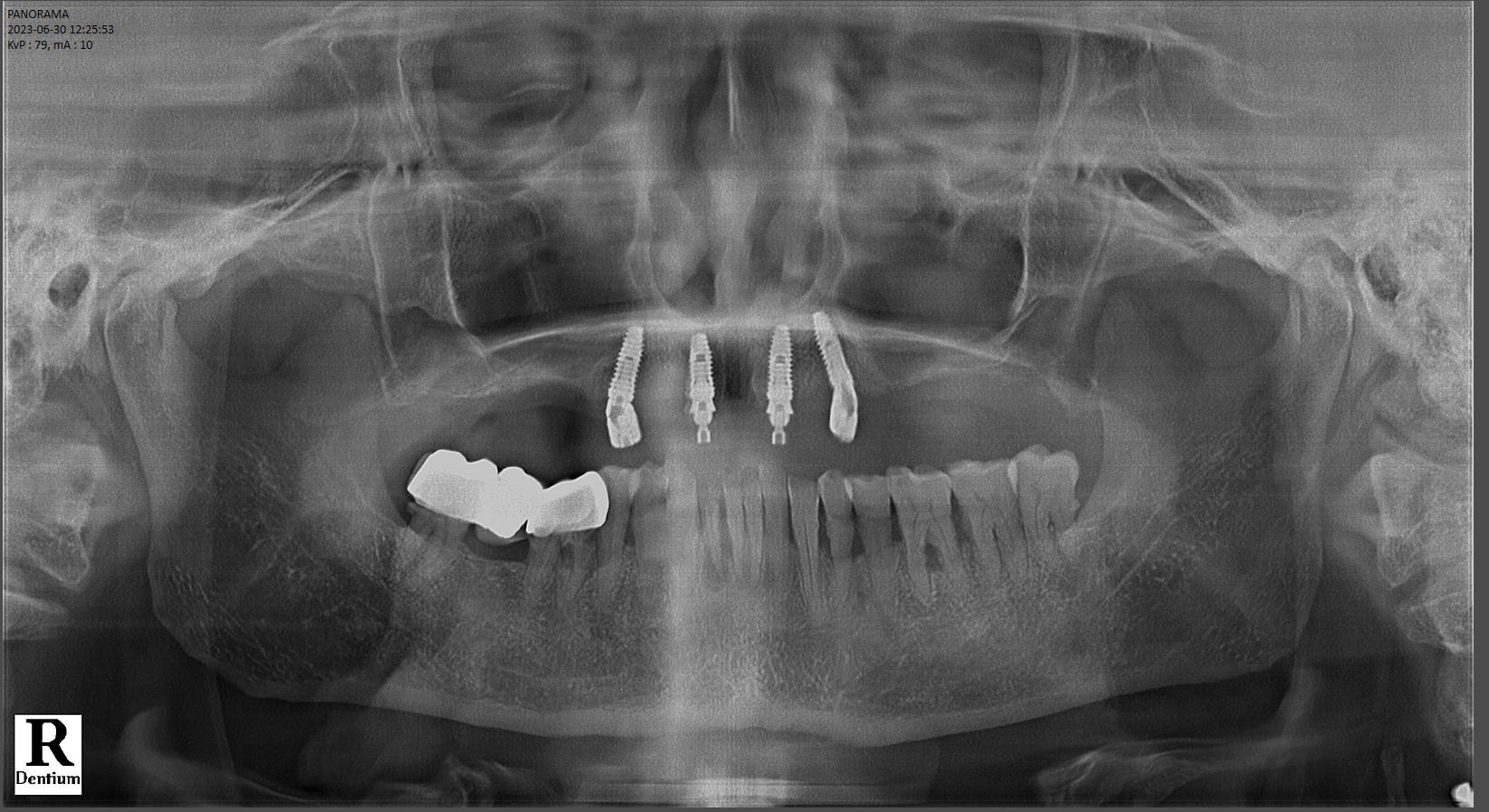 Hình ảnh phim X-quang sau cấy ghép implant toàn hàm All on 4 của khách hàng Doãn Văn Chinh (Ảnh: Lạc Việt Intech)