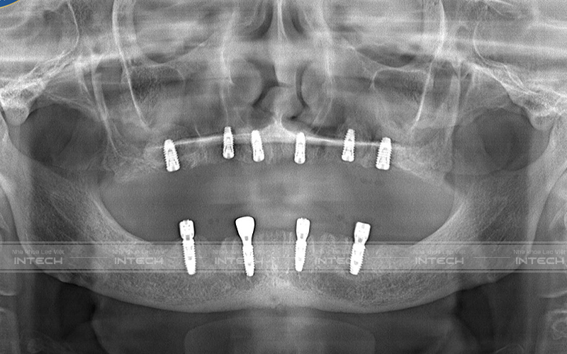 Dưới đây là hình ảnh phim chụp X-quang của chú Nguyễn Minh Sơn sau khi cấy ghép implant: