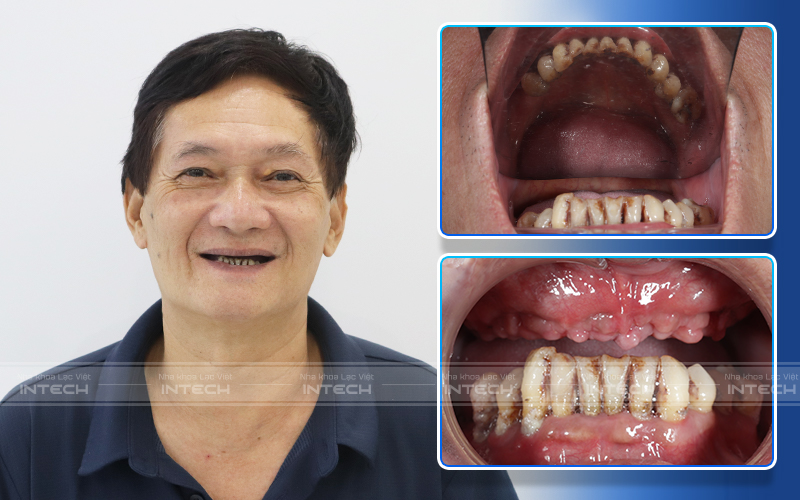 Hình ảnh trước sau của chú Nguyễn Minh Sơn khi hoàn thiện quá trình trồng răng implant (Ảnh: Nha khoa Lạc Việt Intech)