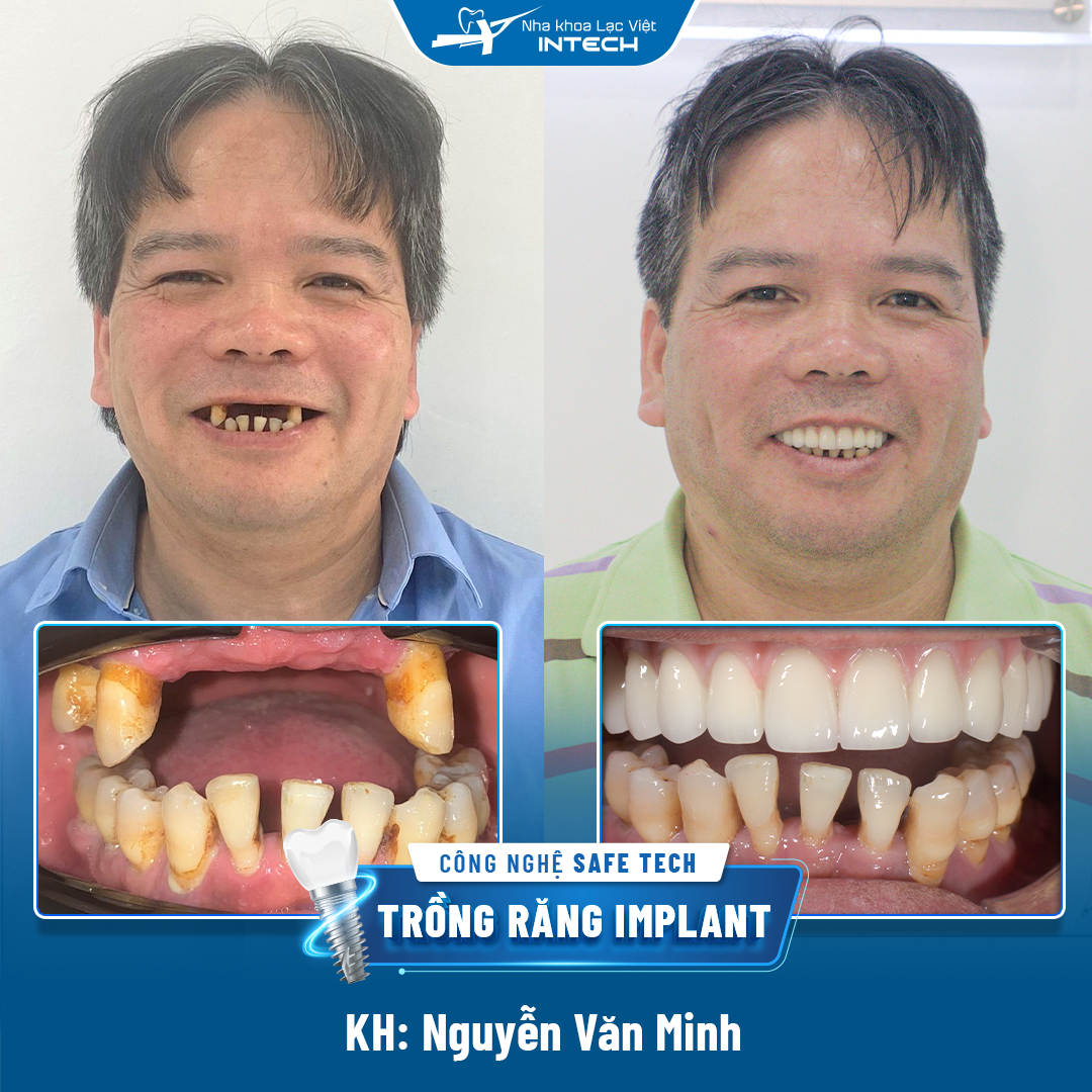 Khi trở về Việt Nam, chú Nguyễn Văn Minh được bạn bè, người thân giới thiệu đến với Nha khoa Lạc Việt Intech. Khi đến tận nơi, được “mắt thấy tai nghe”, chú mới yên tâm lựa chọn dịch vụ. “Trở về nước tôi cũng đi kiểm tra ở rất nhiều nha khoa, các bệnh viện lớn nhỏ, tuy nhiên khi đến với Lạc Việt Intech, tôi thấy được sự tiến bộ của các bạn trong việc ứng dụng những công nghệ mới, các máy móc cũng rất hiện đại. Sau khi đã hiểu rõ trồng răng implant là gì chú Minh quyết định trồng răng tại Lạc Việt Intech. Ngoài ra, tôi còn thấy hài lòng với sự tận tình, nhiệt huyết của đội ngũ bác sĩ, tôi quyết định lựa chọn trồng răng implant tại đây”, chú Minh nói.