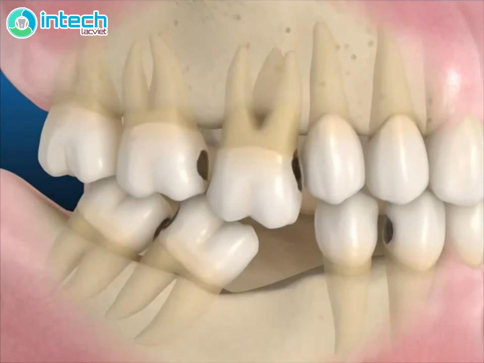 Do bị mất răng: Khi mất răng sẽ tạo nên các khoảng trống trên cung hàm, nếu bạn không thay thế chiếc răng bị mất bằng răng giả, một thời gian sau các răng xung quang do tác động của quá trình ăn nhai và tiêu xương hàm sẽ có xu hướng nghiêng về vị trí răng đã mất.