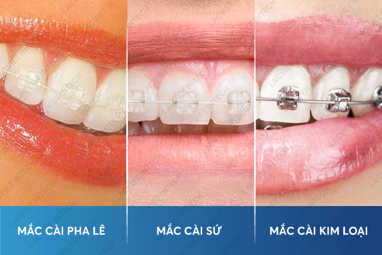 Cận miệng: mắc cài pha lê, mắc cài sứ, mắc cài kim loại