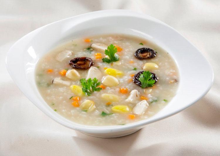 Thực đơn tiếp theo đó chính là món cháo tôm nấm rơm. Bạn có thể mua tôm tươi làm sạch, bỏ vỏ rồi băm nhuyễn với thịt sau đó thêm chút nấm tươi cắt nhỏ để nấu cháo. Như vậy là bạn đã có món cháo tôm nấm rơm cực kỳ hấp dẫn rồi.