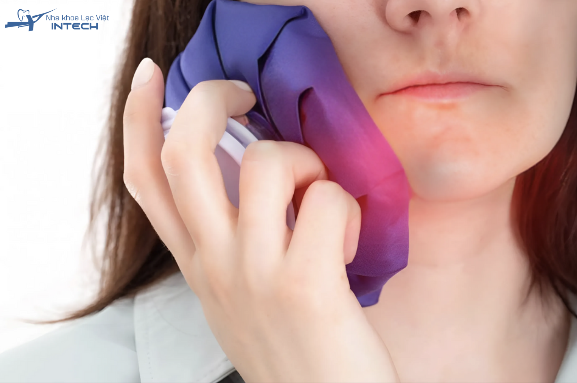 Sử dụng túi chườm lạnh hoặc khăn bọc đá trong quá trình chăm sóc sau khi nhổ răng khôn
