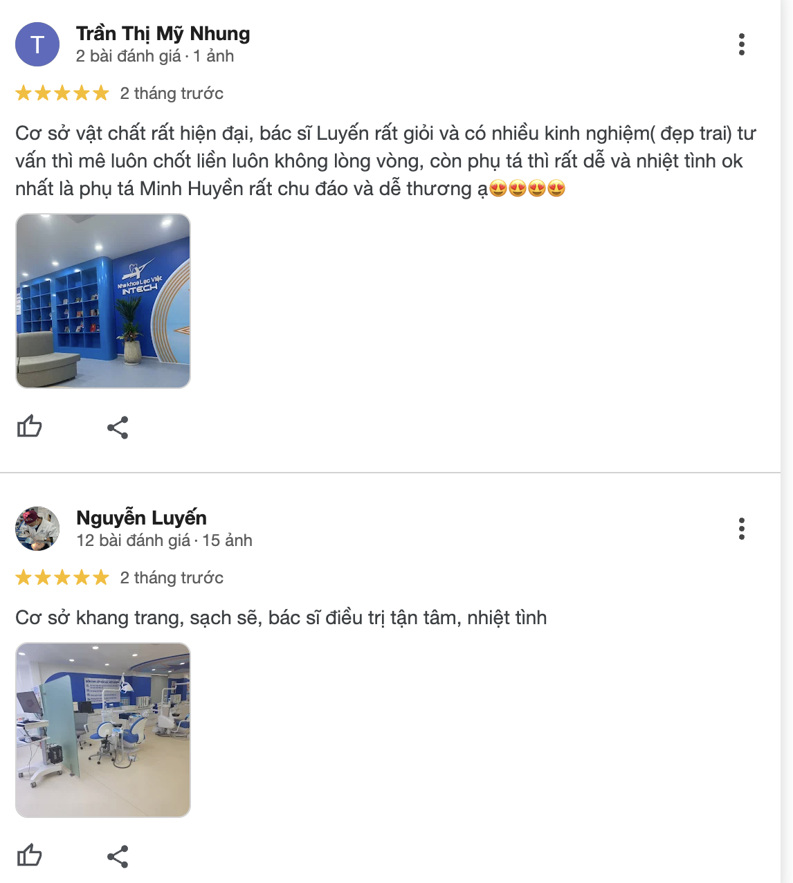Tổng hợp từ các nguồn đánh giá trực tuyến, Nha Khoa Lạc Việt Intech nhận được nhiều phản hồi tích cực từ khách hàng tại TP.HCM cũng như các chi nhánh khác.