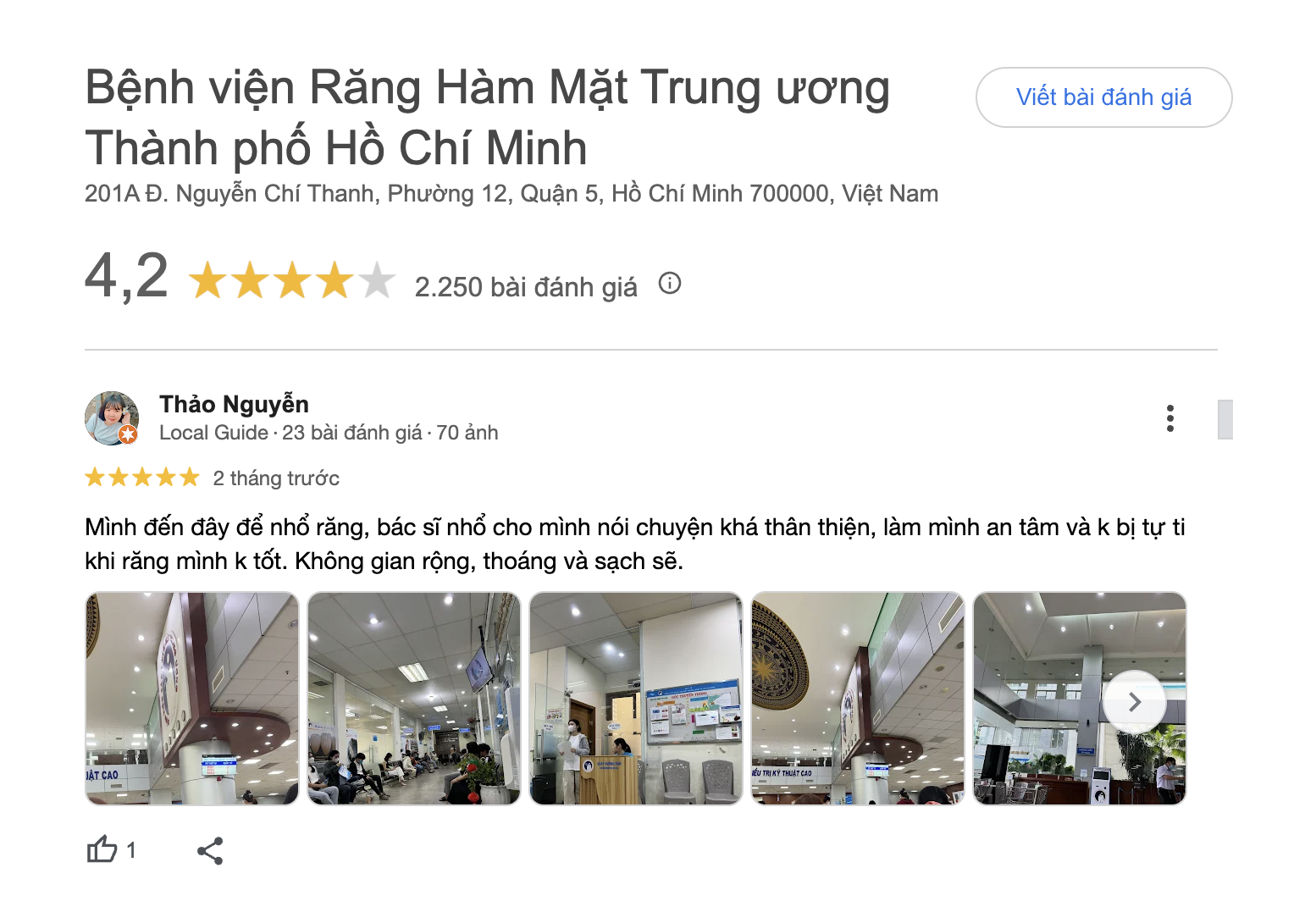 Review của khách hàng tại Bệnh viện Răng Hàm Mặt Trung ương TP.HCM