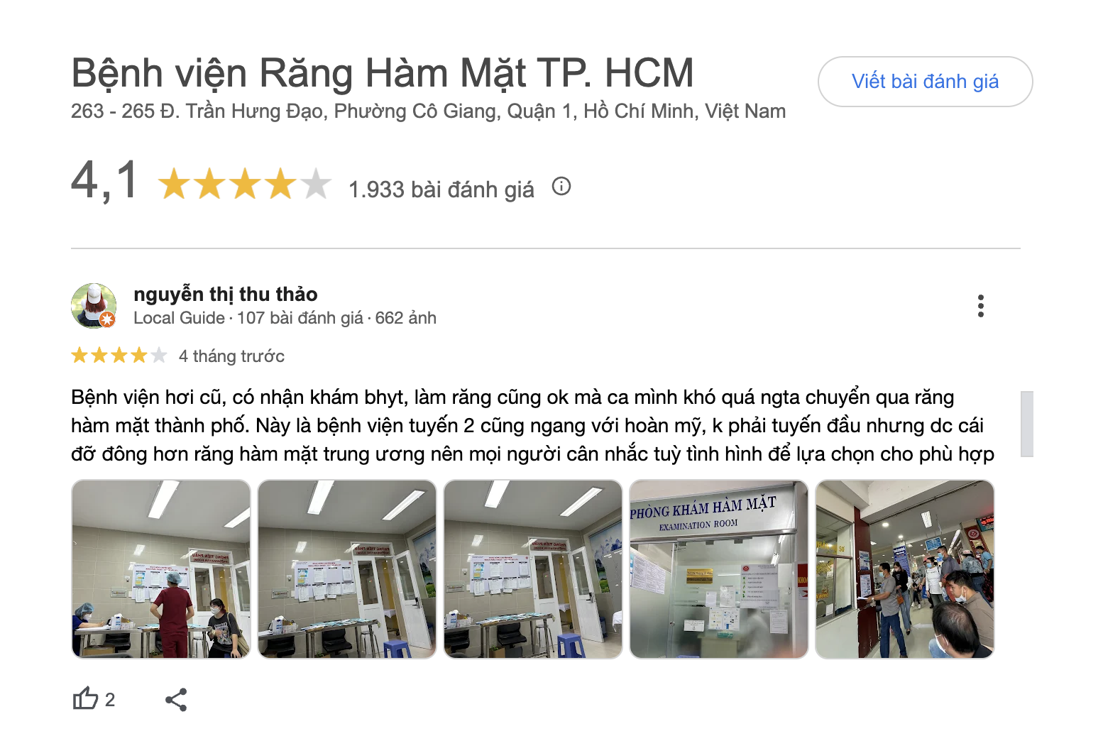 Review của khách hàng tại Bệnh viện Răng Hàm Mặt Sài Gòn