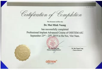 Chứng chỉ cấy ghép Implant của bác sĩ Nguyễn Hoàng Dương