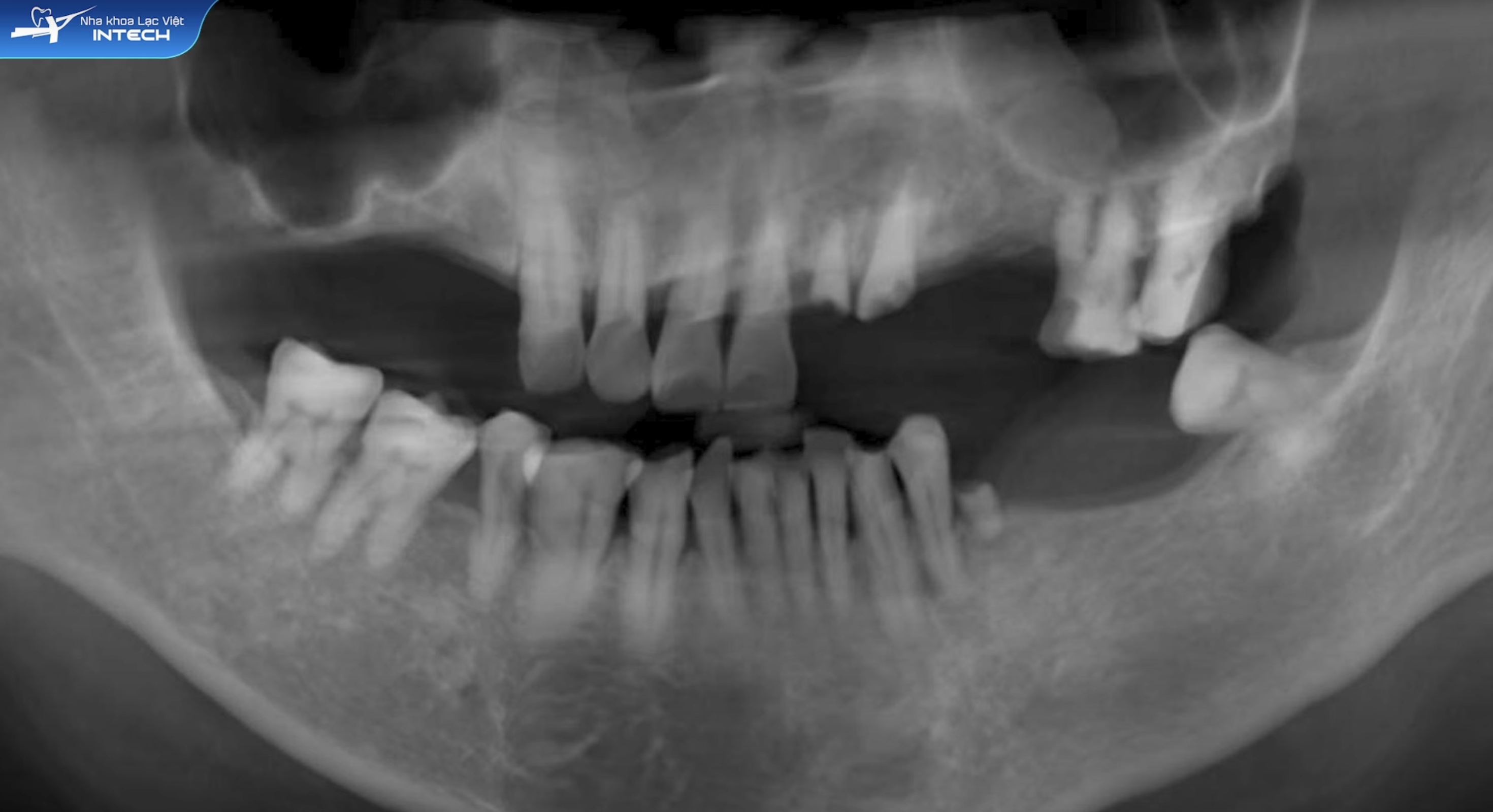 Tình trạng ban đầu của chú Thành rất đáng lo ngại. Chú đã mất gần toàn bộ răng hàm trên và dưới. Chú chỉ còn vài răng cửa yếu. Chú không còn điểm chạm nhai, khi cắn hàm dưới chạm vào lợi gây đau. Chú đã từng thử dùng hàm tháo lắp nhưng bất tiện, không hiệu quả. Giải pháp điều trị của bác sĩ rất tỉ mỉ. Bác sĩ lên kế hoạch phục hồi theo từng giai đoạn, giảm áp lực và đảm bảo an toàn. Tạm thời làm hàm tháo lắp để ổn định khớp cắn. Sau đó, tiến hành cấy implant ở các vị trí răng hàm quan trọng. Sau khi implant tích hợp xương, bác sĩ lắp răng sứ hoàn thiện. Cuối cùng, kết hợp bọc sứ răng cửa để cải thiện thẩm mỹ và khớp cắn.