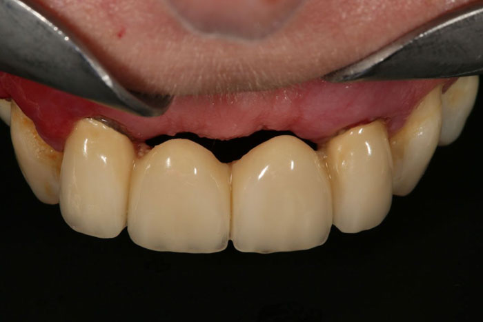 Sau vài năm, răng trụ dễ bị ê buốt, viêm tủy, và có thể làm hỏng cả hai răng này. Thêm vào đó, xương hàm tại vị trí răng mất không được kích thích nên tiêu dần, gây tụt lợi, dắt thức ăn và mất thẩm mỹ.