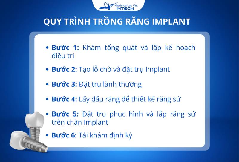 Cô chú/anh chị có thể tham khảo quy trình cấy ghép Implant không đau tại Nha khoa Lạc Việt Intech sau đây để biết từng bước trong quá trình cấy ghép: