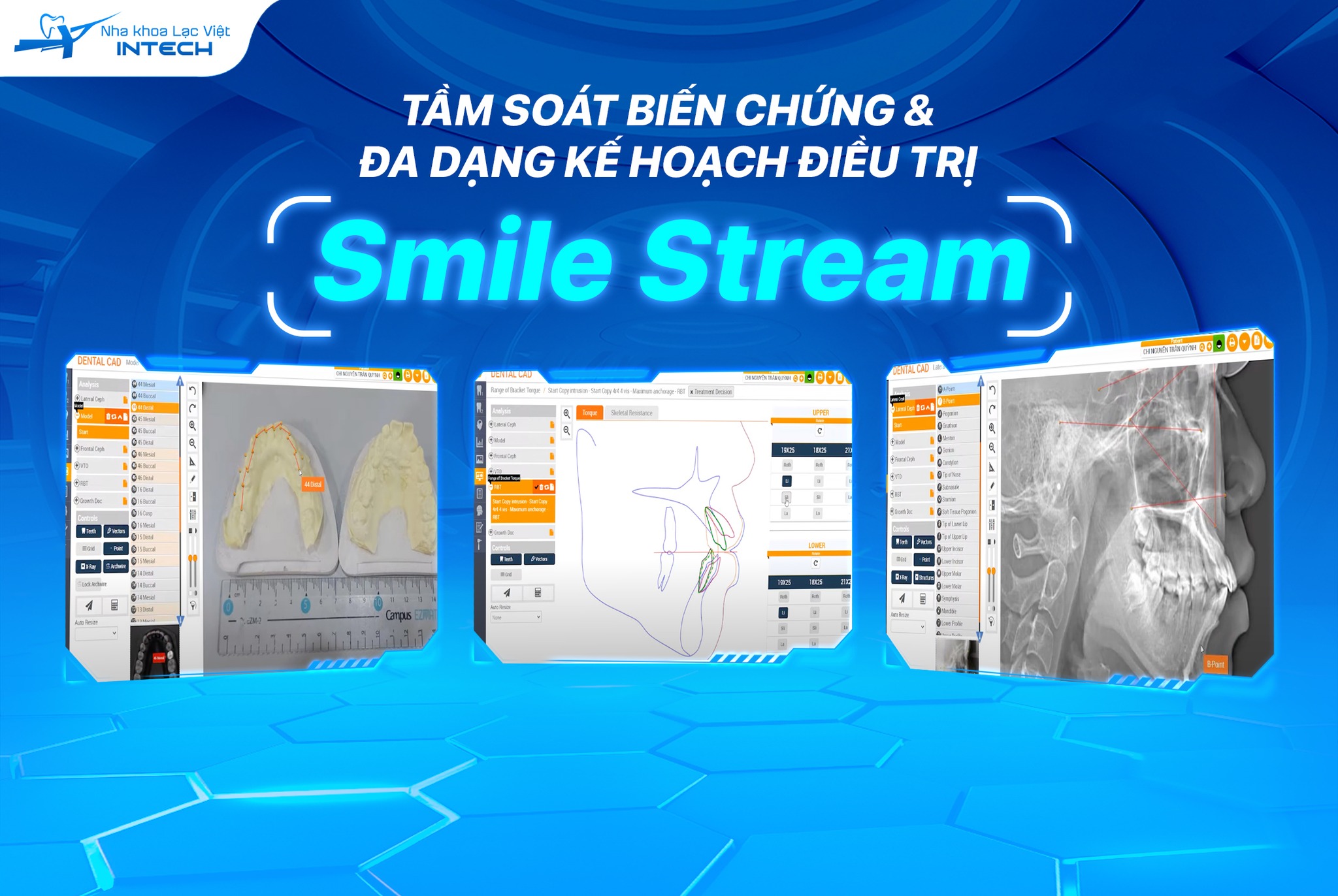 Smilestream cũng sẽ phân tích tỷ lệ vàng khuôn mặt cùng các chỉ số về răng và xương từ đó xây dựng kế hoạch điều trị chi tiết và chọn mắc cài phù hợp. Toàn bộ phức hợp răng - xương ổ răng sẽ được dịch chuyển chính xác, với sự giám sát chặt chẽ của bác sĩ trong suốt quá trình điều trị, đảm bảo mang đến kết quả điều trị tốt nhất.